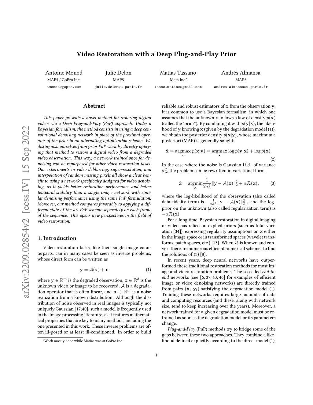 Video Restoration with a Deep Plug-and-Play Prior