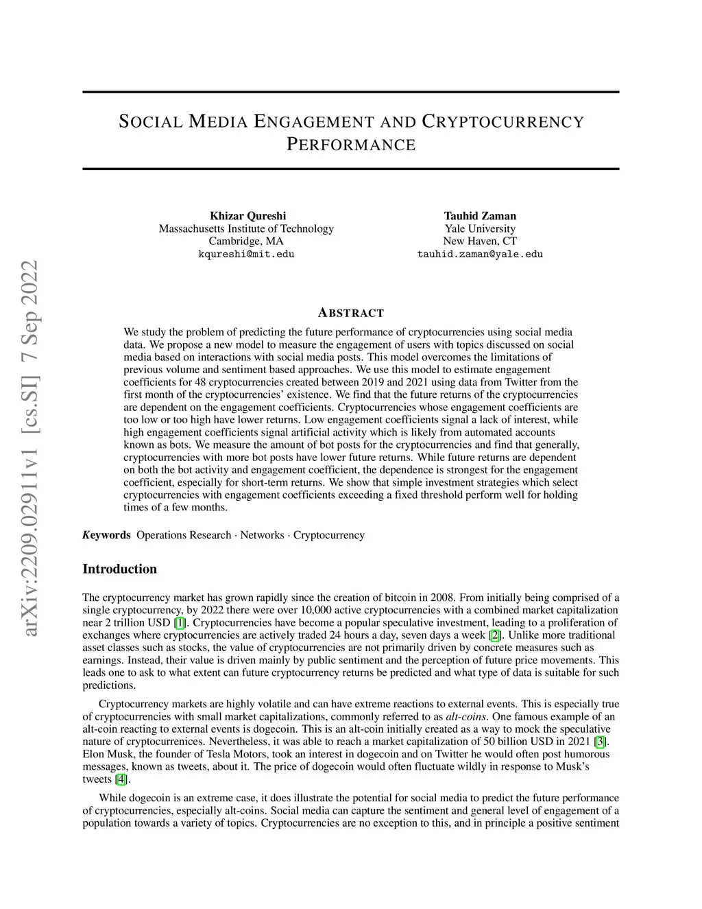 Social Media Engagement and Cryptocurrency Performance