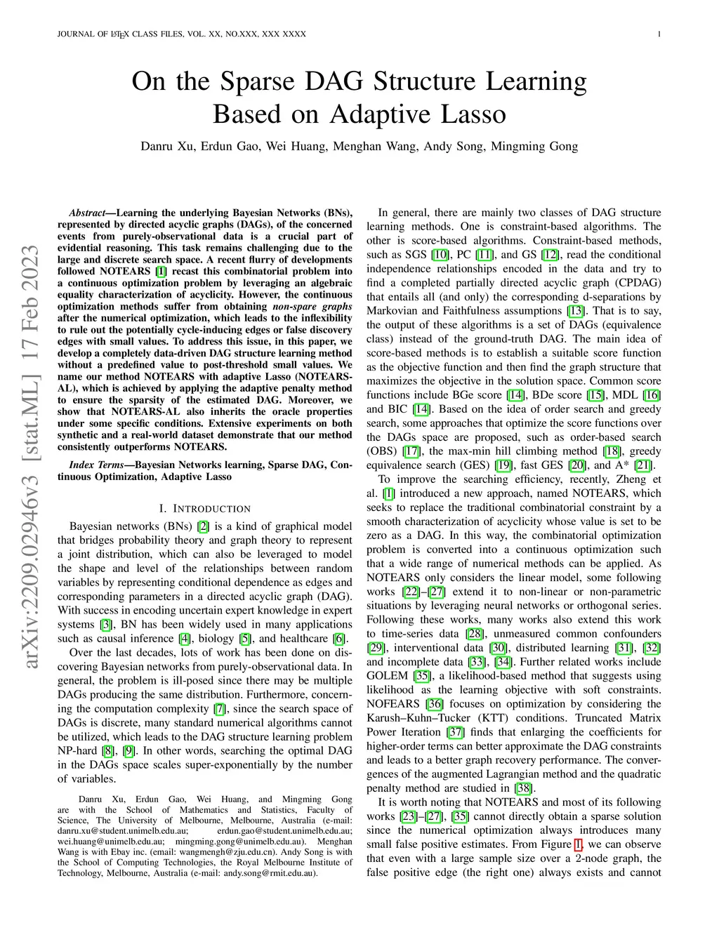 On the Sparse DAG Structure Learning Based on Adaptive Lasso