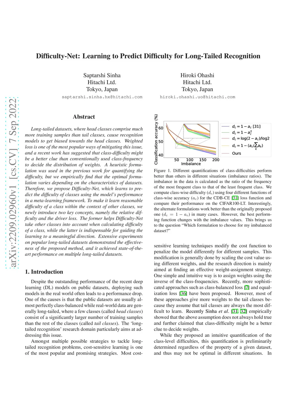 Difficulty-Net: Learning to Predict Difficulty for Long-Tailed