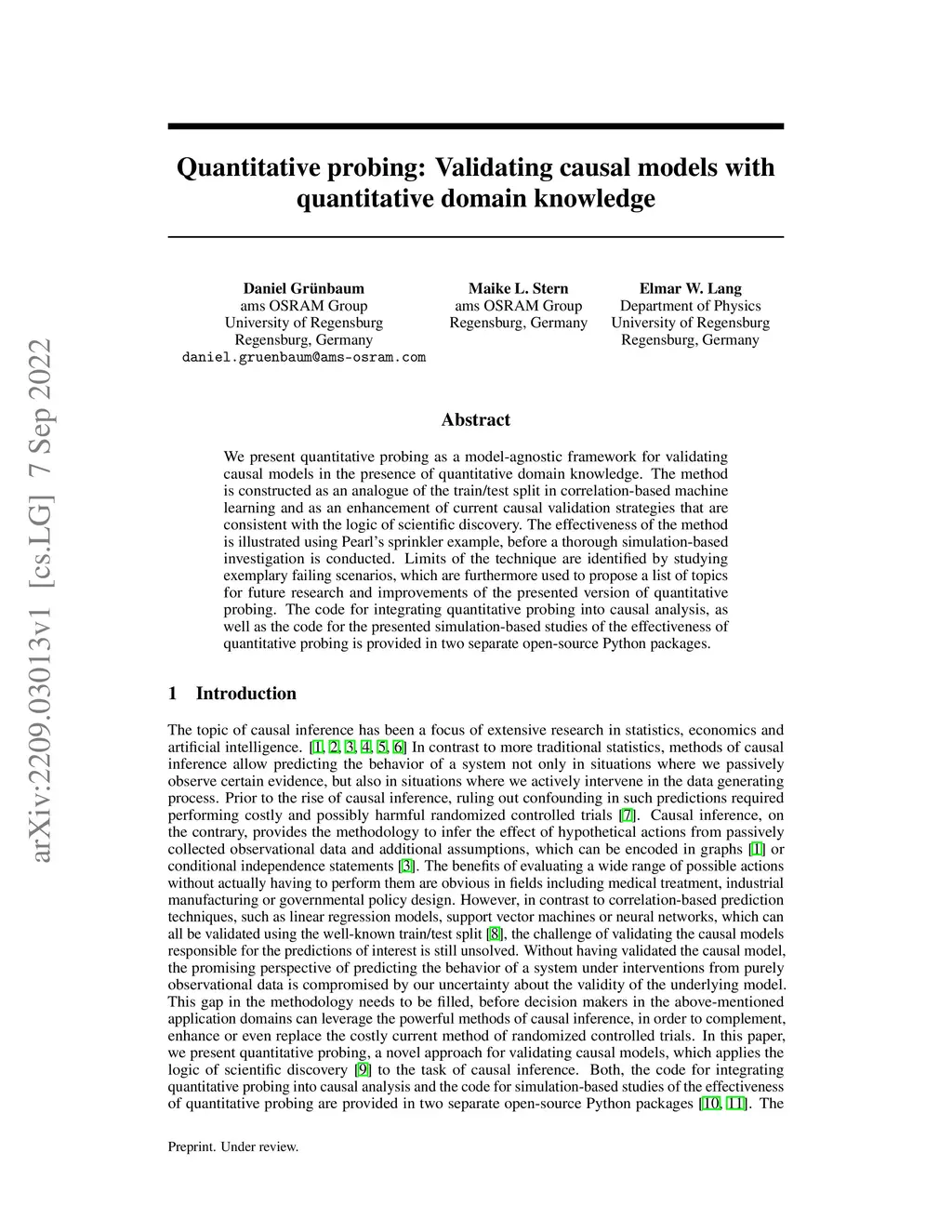 We present quantitative probing as a model-agnostic framework for validating causal models in the presence of quantitative domain knowledge. The method is constructed as an analogue of the train/test split in correlation-based machine learning and as an enhancement of current causal validation strategies that are consistent with the logic of scientific discovery. The effectiveness of the method is illustrated using Pearl's sprinkler example, before a thorough simulation-based investigation is conducted. Limits of the technique are identified by studying exemplary failing scenarios, which are furthermore used to propose a list of topics for future research and improvements of the presented version of quantitative probing. The code for integrating quantitative probing into causal analysis, as well as the code for the presented simulation-based studies of the effectiveness of quantitative probing is provided in two separate open-source Python packages.