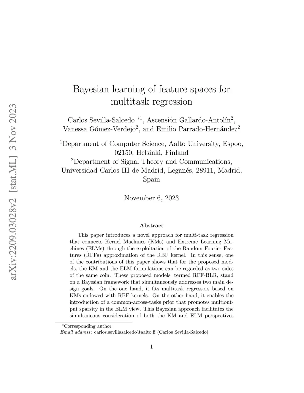 This paper introduces a novel approach for multi-task regression that connects Kernel Machines (KMs) and Extreme Learning Machines (ELMs) through the exploitation of the Random Fourier Features (RFFs) approximation of the RBF kernel. In this sense, one of the contributions of this paper shows that for the proposed models, the KM and the ELM formulations can be regarded as two sides of the same coin. These proposed models, termed RFF-BLR, stand on a Bayesian framework that simultaneously addresses two main design goals. On the one hand, it fits multitask regressors based on KMs endowed with RBF kernels. On the other hand, it enables the introduction of a common-across-tasks prior that promotes multioutput sparsity in the ELM view. This Bayesian approach facilitates the simultaneous consideration of both the KM and ELM perspectives enabling (i) the optimisation of the RBF kernel parameter within a probabilistic framework, (ii) the optimisation of the model complexity, and (iii) an efficient transfer of knowledge across tasks. The experimental results show that this framework can lead to significant performance improvements compared to the state-of-the-art methods in multitask nonlinear regression.