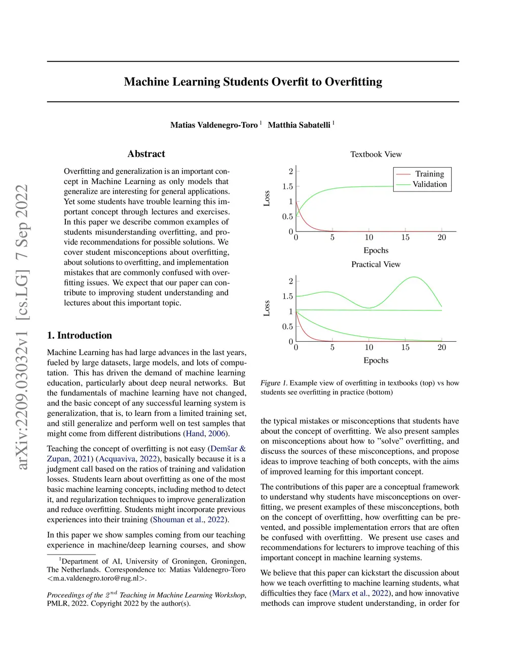 Overfitting and generalization is an important concept in Machine Learning as only models that generalize are interesting for general applications. Yet some students have trouble learning this important concept through lectures and exercises. In this paper we describe common examples of students misunderstanding overfitting, and provide recommendations for possible solutions. We cover student misconceptions about overfitting, about solutions to overfitting, and implementation mistakes that are commonly confused with overfitting issues. We expect that our paper can contribute to improving student understanding and lectures about this important topic.