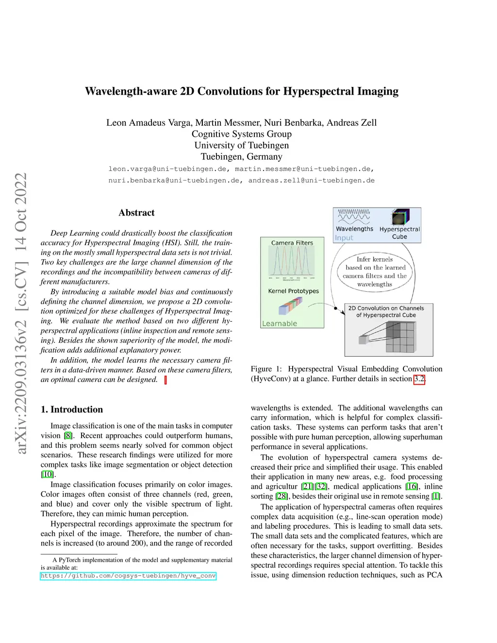 Deep Learning could drastically boost the classification accuracy for Hyperspectral Imaging (HSI). Still, the training on the mostly small hyperspectral data sets is not trivial. Two key challenges are the large channel dimension of the recordings and the incompatibility between cameras of different manufacturers. By introducing a suitable model bias and continuously defining the channel dimension, we propose a 2D convolution optimized for these challenges of Hyperspectral Imaging. We evaluate the method based on two different hyperspectral applications (inline inspection and remote sensing). Besides the shown superiority of the model, the modification adds additional explanatory power. In addition, the model learns the necessary camera filters in a data-driven manner. Based on these camera filters, an optimal camera can be designed.