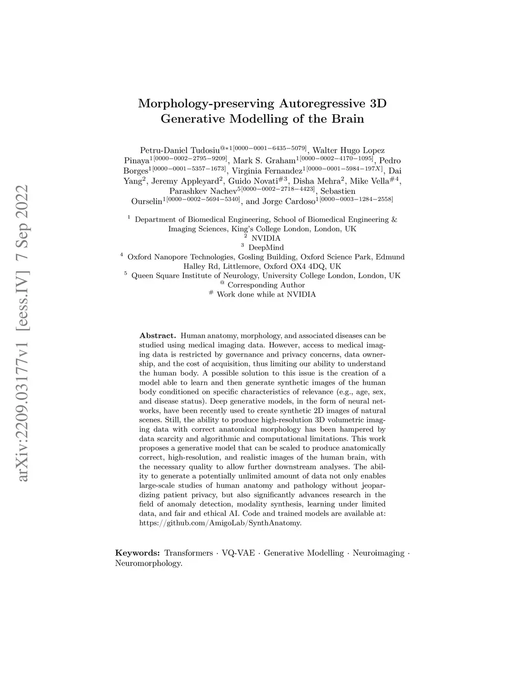 Morphology-preserving Autoregressive 3D Generative Modelling of the