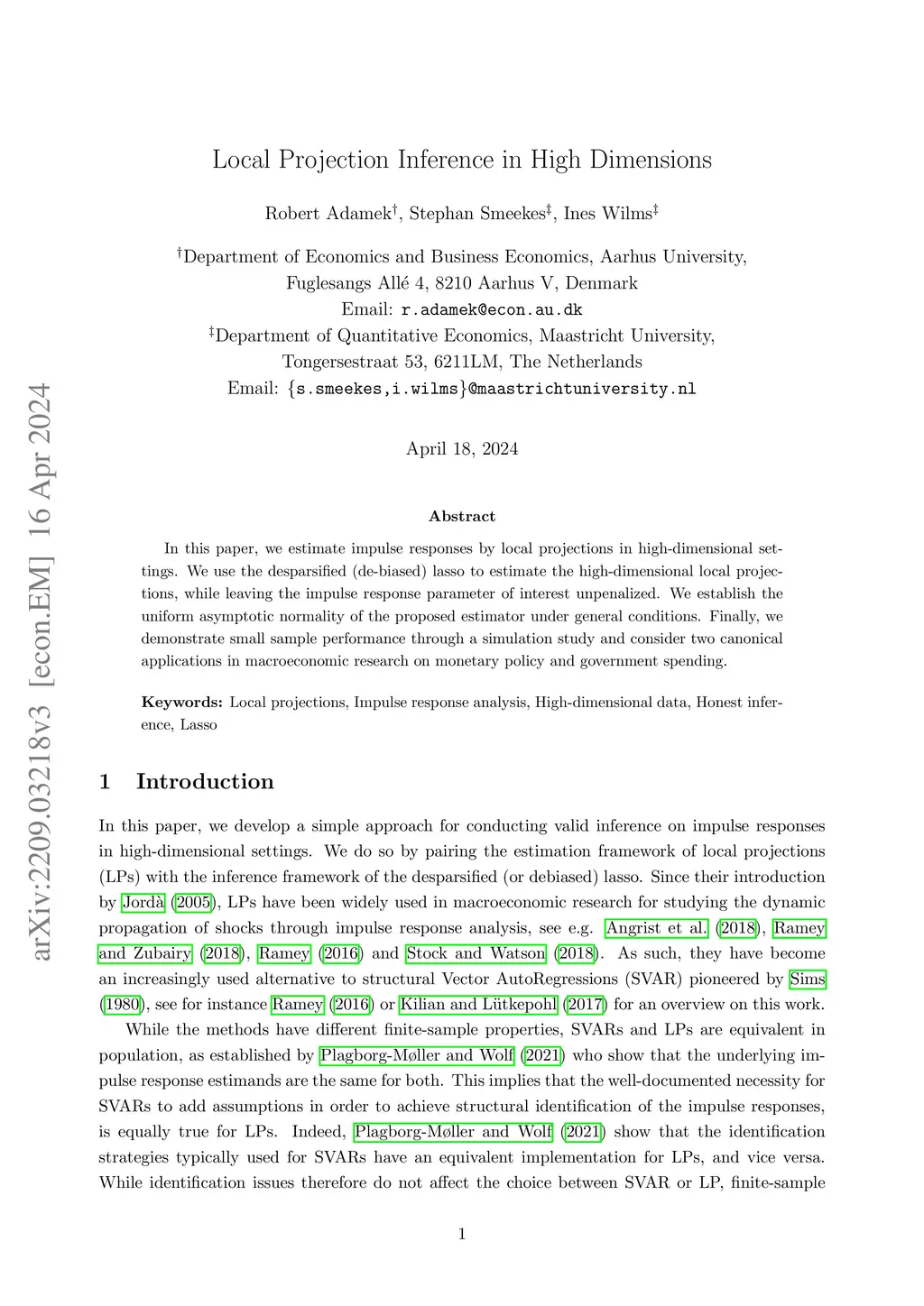 In this paper, we estimate impulse responses by local projections in high-dimensional settings. We use the desparsified (de-biased) lasso to estimate the high-dimensional local projections, while leaving the impulse response parameter of interest unpenalized. We establish the uniform asymptotic normality of the proposed estimator under general conditions. Finally, we demonstrate small sample performance through a simulation study and consider two canonical applications in macroeconomic research on monetary policy and government spending.