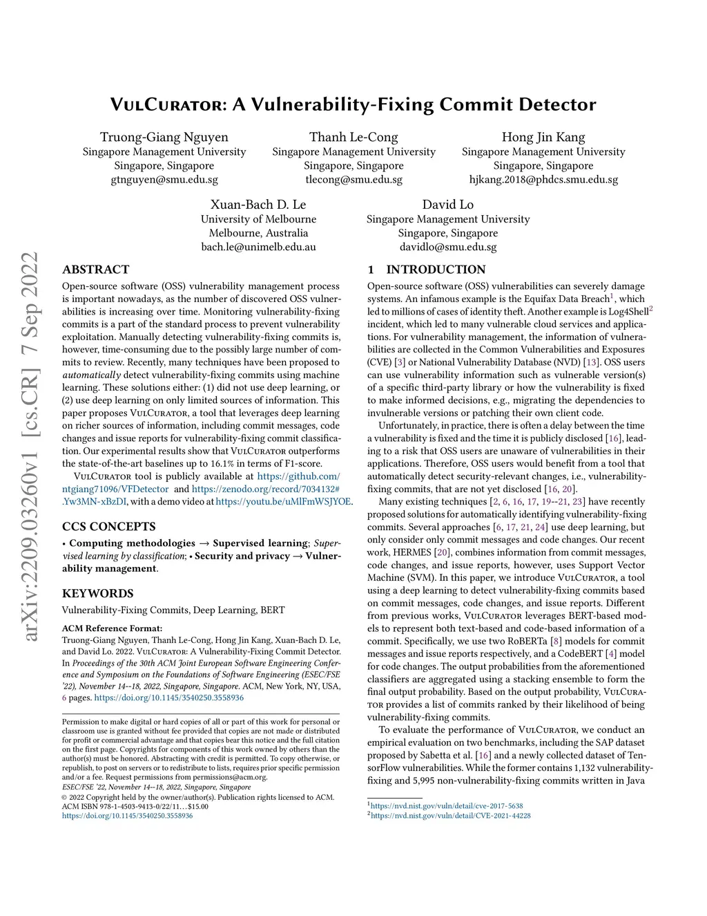 VulCurator: A Vulnerability-Fixing Commit Detector