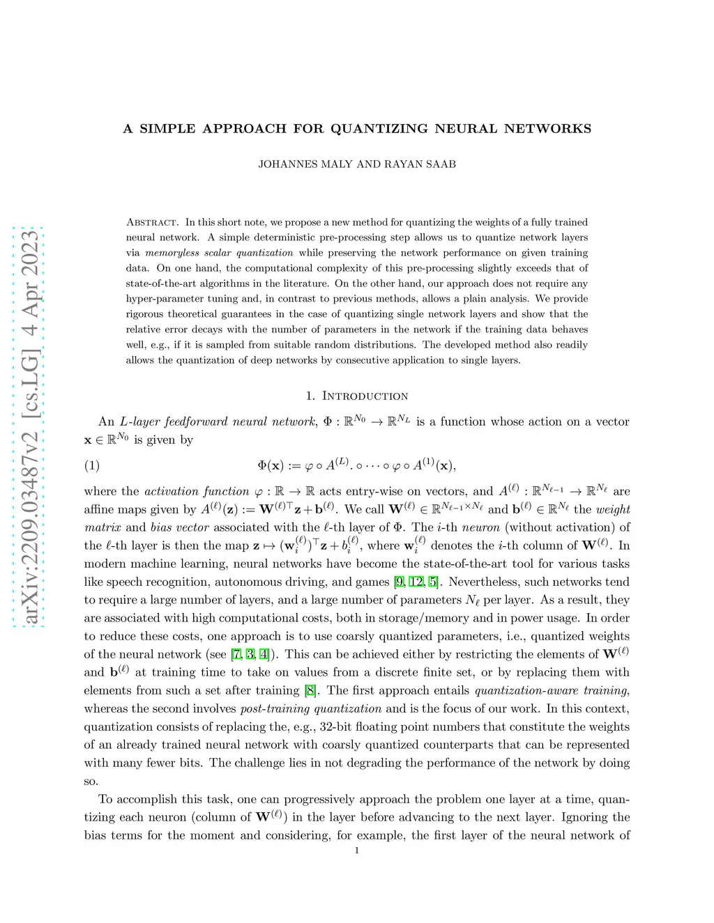 A simple approach for quantizing neural networks