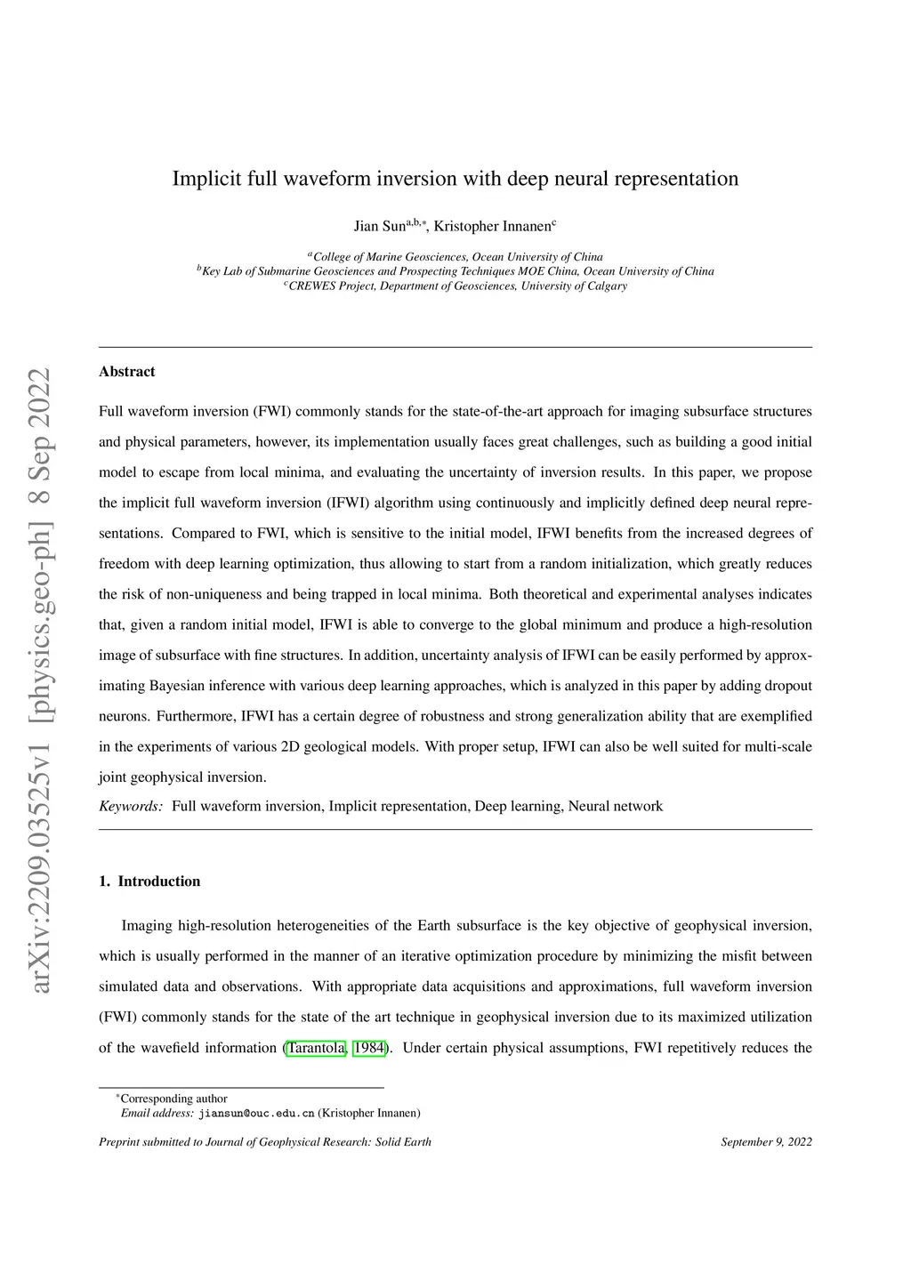 Implicit Full Waveform Inversion with Deep Neural Representation