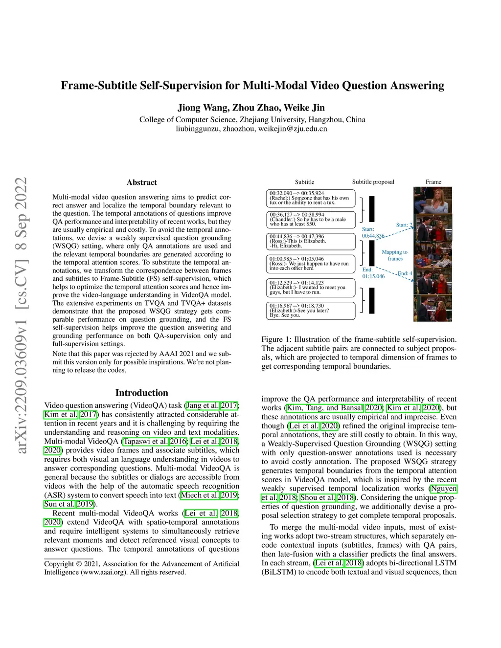 Frame-Subtitle Self-Supervision for Multi-Modal Video Question Answering