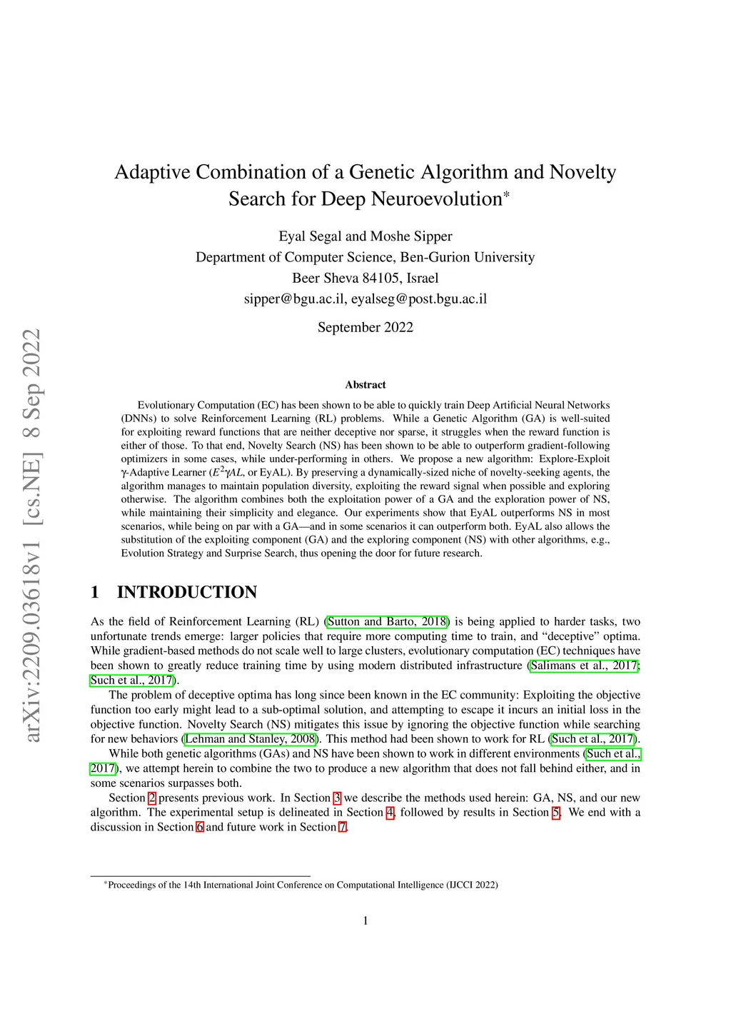 Evolutionary Computation (EC) has been shown to be able to quickly train Deep Artificial Neural Networks (DNNs) to solve Reinforcement Learning (RL) problems. While a Genetic Algorithm (GA) is well-suited for exploiting reward functions that are neither deceptive nor sparse, it struggles when the reward function is either of those. To that end, Novelty Search (NS) has been shown to be able to outperform gradient-following optimizers in some cases, while under-performing in others. We propose a new algorithm: Explore-Exploit -Adaptive Learner (, or EyAL). By preserving a dynamically-sized niche of novelty-seeking agents, the algorithm manages to maintain population diversity, exploiting the reward signal when possible and exploring otherwise. The algorithm combines both the exploitation power of a GA and the exploration power of NS, while maintaining their simplicity and elegance. Our experiments show that EyAL outperforms NS in most scenarios, while being on par with a GA -- and in some scenarios it can outperform both. EyAL also allows the substitution of the exploiting component (GA) and the exploring component (NS) with other algorithms, e.g., Evolution Strategy and Surprise Search, thus opening the door for future research.