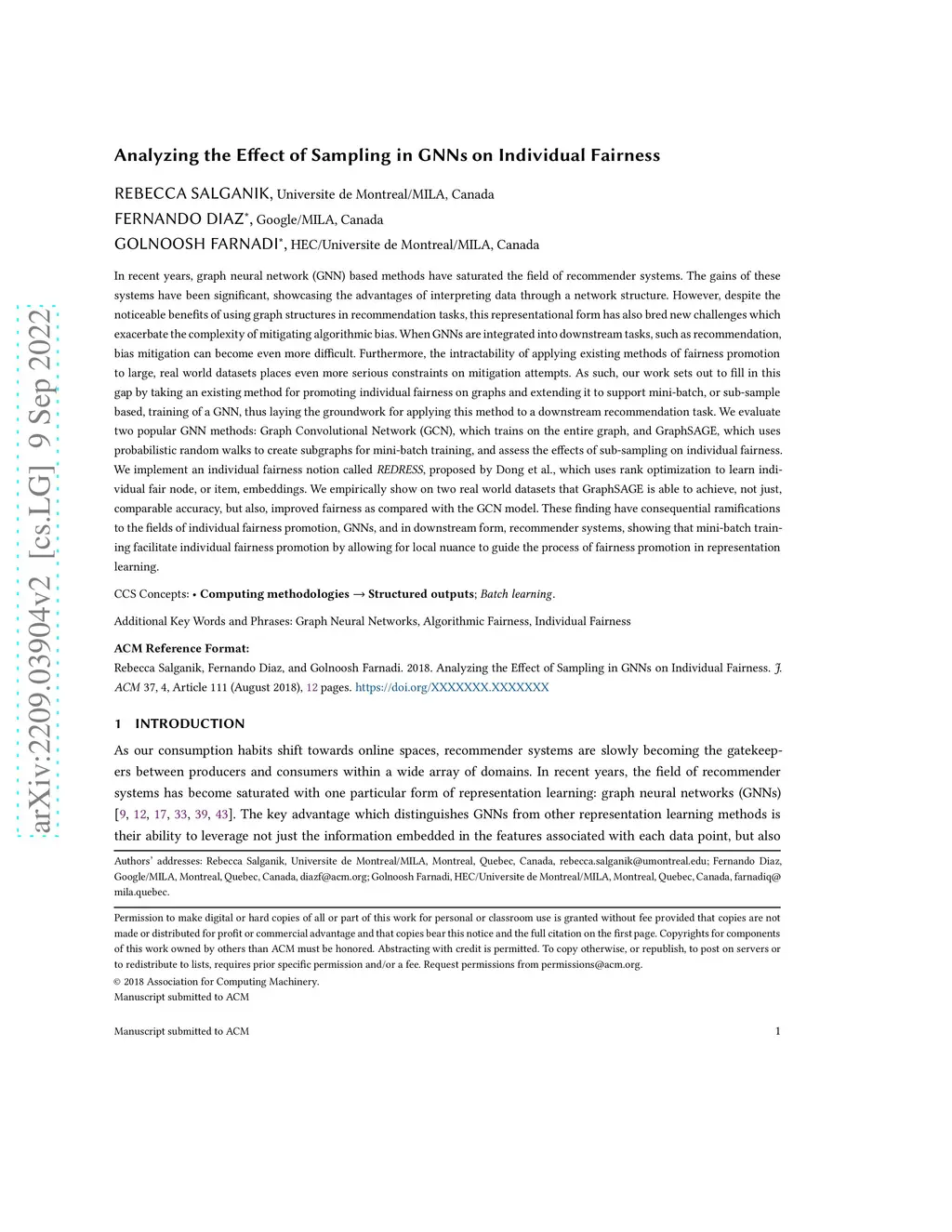 Graph neural network (GNN) based methods have saturated the field of recommender systems. The gains of these systems have been significant, showing the advantages of interpreting data through a network structure. However, despite the noticeable benefits of using graph structures in recommendation tasks, this representational form has also bred new challenges which exacerbate the complexity of mitigating algorithmic bias. When GNNs are integrated into downstream tasks, such as recommendation, bias mitigation can become even more difficult. Furthermore, the intractability of applying existing methods of fairness promotion to large, real world datasets places even more serious constraints on mitigation attempts. Our work sets out to fill in this gap by taking an existing method for promoting individual fairness on graphs and extending it to support mini-batch, or sub-sample based, training of a GNN, thus laying the groundwork for applying this method to a downstream recommendation task. We evaluate two popular GNN methods: Graph Convolutional Network (GCN), which trains on the entire graph, and GraphSAGE, which uses probabilistic random walks to create subgraphs for mini-batch training, and assess the effects of sub-sampling on individual fairness. We implement an individual fairness notion called \textit{REDRESS}, proposed by Dong et al., which uses rank optimization to learn individual fair node, or item, embeddings. We empirically show on two real world datasets that GraphSAGE is able to achieve, not just, comparable accuracy, but also, improved fairness as compared with the GCN model. These finding have consequential ramifications to individual fairness promotion, GNNs, and in downstream form, recommender systems, showing that mini-batch training facilitate individual fairness promotion by allowing for local nuance to guide the process of fairness promotion in representation learning.