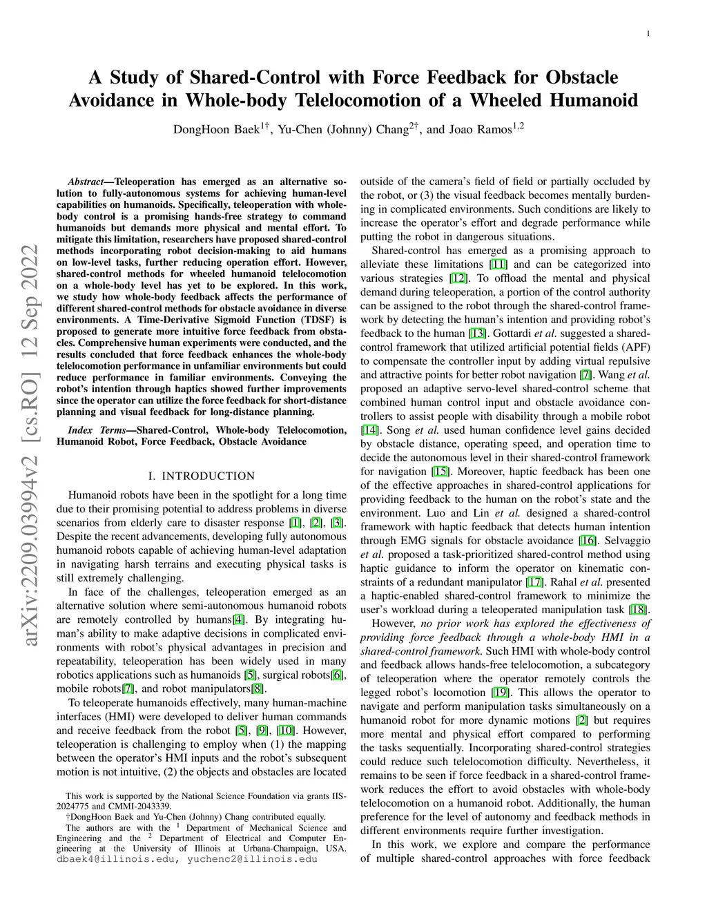 A Study of Shared-Control with Force Feedback for Obstacle Avoidance in