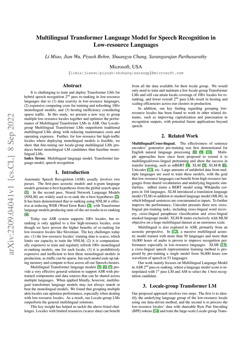 It is challenging to train and deploy Transformer LMs for hybrid speech recognition 2nd pass re-ranking in low-resource languages due to (1) data scarcity in low-resource languages, (2) expensive computing costs for training and refreshing 100+ monolingual models, and (3) hosting inefficiency considering sparse traffic. In this study, we present a new way to group multiple low-resource locales together and optimize the performance of Multilingual Transformer LMs in ASR. Our Locale-group Multilingual Transformer LMs outperform traditional multilingual LMs along with reducing maintenance costs and operating expenses. Further, for low-resource but high-traffic locales where deploying monolingual models is feasible, we show that fine-tuning our locale-group multilingual LMs produces better monolingual LM candidates than baseline monolingual LMs.