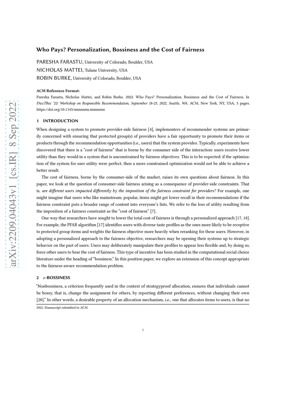 Who Pays? Personalization, Bossiness and the Cost of Fairness