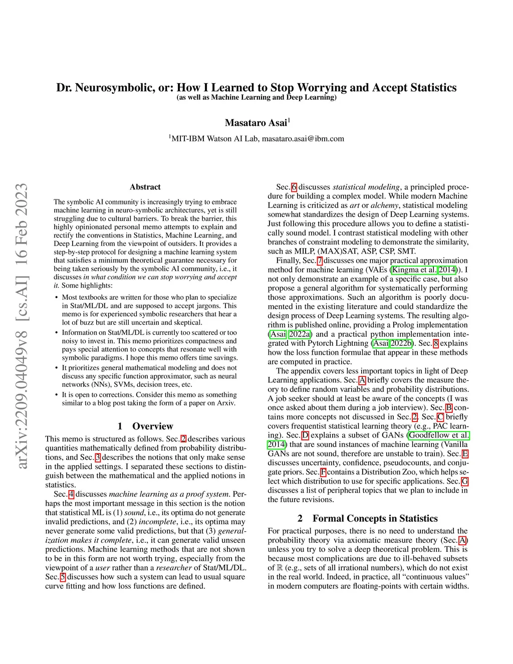 The symbolic AI community is increasingly trying to embrace machine learning in neuro-symbolic architectures, yet is still struggling due to cultural barriers. To break the barrier, this rather opinionated personal memo attempts to explain and rectify the conventions in Statistics, Machine Learning, and Deep Learning from the viewpoint of outsiders. It provides a step-by-step protocol for designing a machine learning system that satisfies a minimum theoretical guarantee necessary for being taken seriously by the symbolic AI community, i.e., it discusses "in what condition we can stop worrying and accept statistical machine learning." Unlike most textbooks which are written for students trying to specialize in Stat/ML/DL and willing to accept jargons, this memo is written for experienced symbolic researchers that hear a lot of buzz but are still uncertain and skeptical. Information on Stat/ML/DL is currently too scattered or too noisy to invest in. This memo prioritizes compactness, citations to old papers (many in early 20th century), and concepts that resonate well with symbolic paradigms in order to offer time savings. It prioritizes general mathematical modeling and does not discuss any specific function approximator, such as neural networks (NNs), SVMs, decision trees, etc. Finally, it is open to corrections. Consider this memo as something similar to a blog post taking the form of a paper on Arxiv.