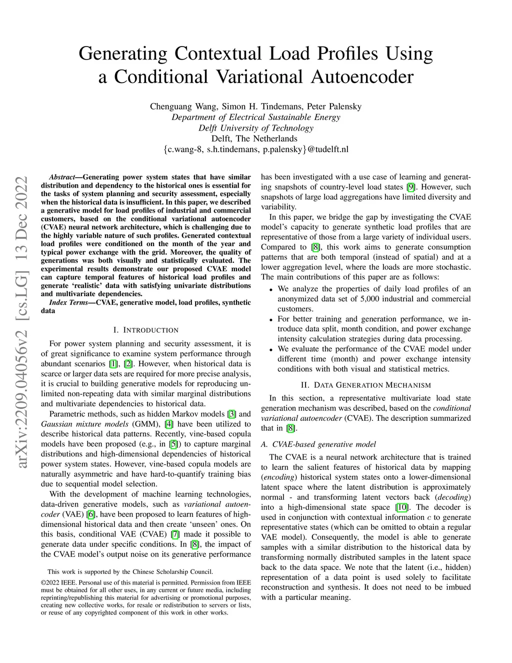 Generating power system states that have similar distribution and dependency to the historical ones is essential for the tasks of system planning and security assessment, especially when the historical data is insufficient. In this paper, we described a generative model for load profiles of industrial and commercial customers, based on the conditional variational autoencoder (CVAE) neural network architecture, which is challenging due to the highly variable nature of such profiles. Generated contextual load profiles were conditioned on the month of the year and typical power exchange with the grid. Moreover, the quality of generations was both visually and statistically evaluated. The experimental results demonstrate our proposed CVAE model can capture temporal features of historical load profiles and generate `realistic' data with satisfying univariate distributions and multivariate dependencies.