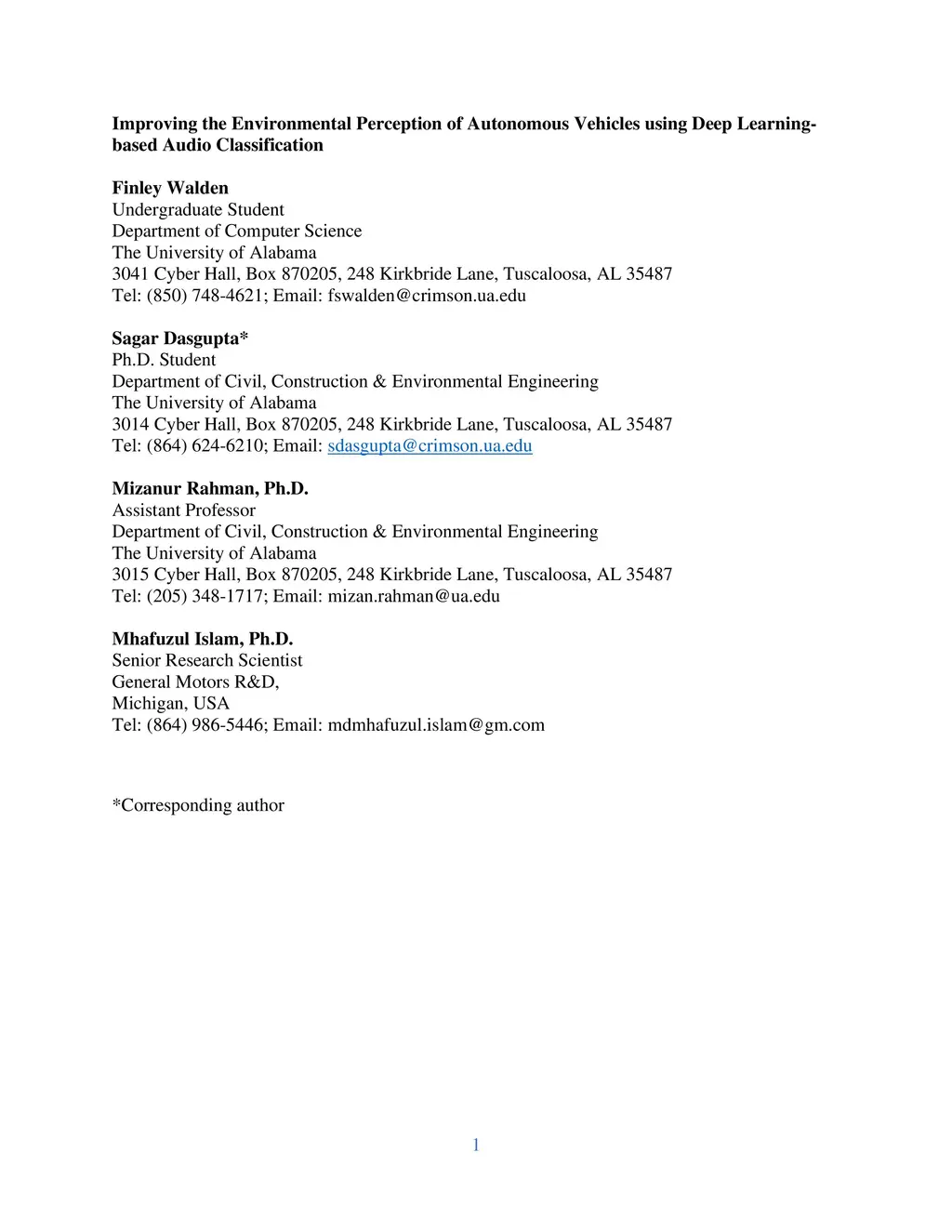 Sense of hearing is crucial for autonomous vehicles (AVs) to better perceive its surrounding environment. Although visual sensors of an AV, such as camera, lidar, and radar, help to see its surrounding environment, an AV cannot see beyond those sensors line of sight. On the other hand, an AV s sense of hearing cannot be obstructed by line of sight. For example, an AV can identify an emergency vehicle s siren through audio classification even though the emergency vehicle is not within the line of sight of the AV. Thus, auditory perception is complementary to the camera, lidar, and radar-based perception systems. This paper presents a deep learning-based robust audio classification framework aiming to achieve improved environmental perception for AVs. The presented framework leverages a deep Convolution Neural Network (CNN) to classify different audio classes. UrbanSound8k, an urban environment dataset, is used to train and test the developed framework. Seven audio classes i.e., air conditioner, car horn, children playing, dog bark, engine idling, gunshot, and siren, are identified from the UrbanSound8k dataset because of their relevancy related to AVs. Our framework can classify different audio classes with 97.82% accuracy. Moreover, the audio classification accuracies with all ten classes are presented, which proves that our framework performed better in the case of AV-related sounds compared to the existing audio classification frameworks.