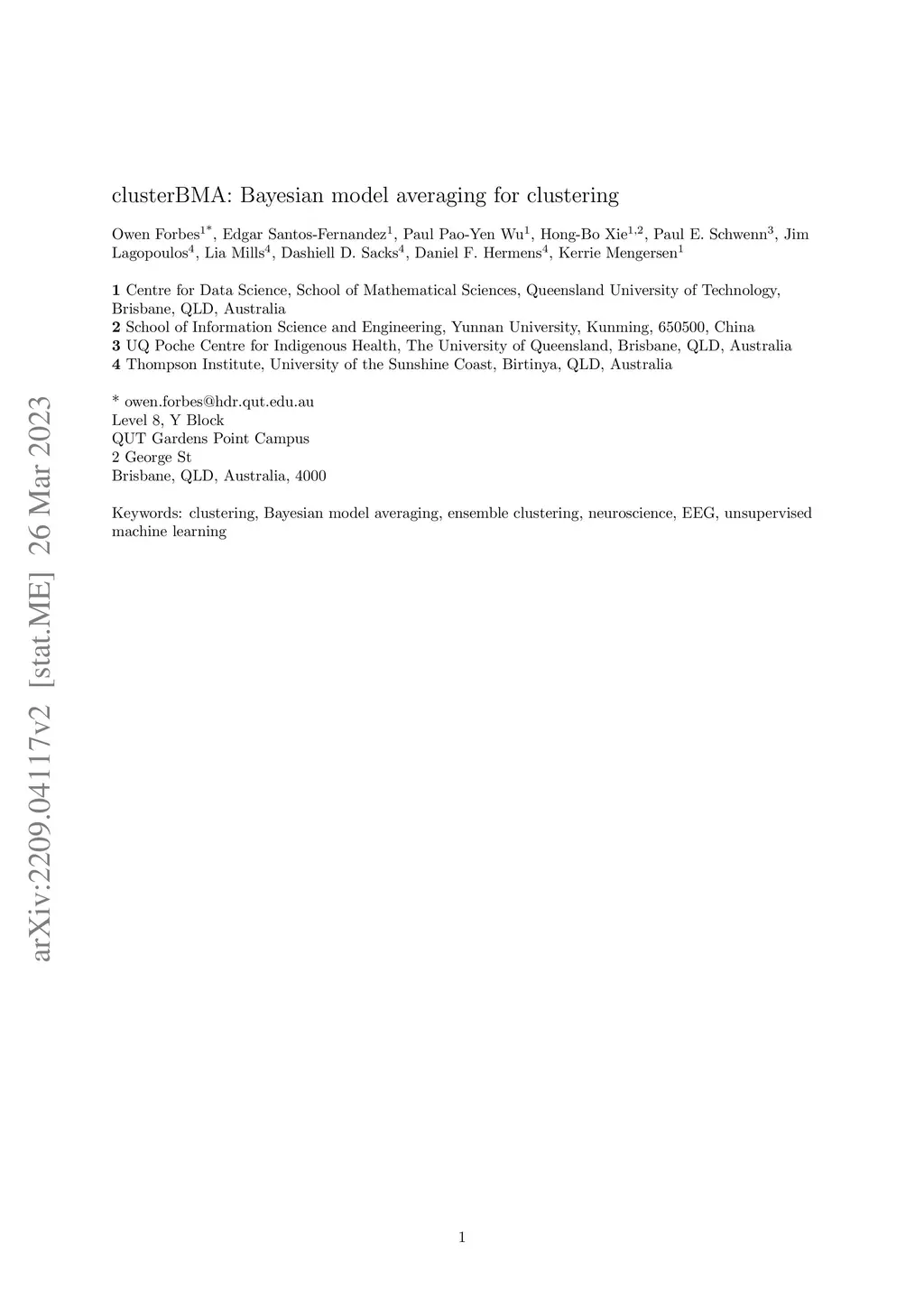 Various methods have been developed to combine inference across multiple sets of results for unsupervised clustering, within the ensemble clustering literature. The approach of reporting results from one `best' model out of several candidate clustering models generally ignores the uncertainty that arises from model selection, and results in inferences that are sensitive to the particular model and parameters chosen. Bayesian model averaging (BMA) is a popular approach for combining results across multiple models that offers some attractive benefits in this setting, including probabilistic interpretation of the combined cluster structure and quantification of model-based uncertainty. In this work we introduce clusterBMA, a method that enables weighted model averaging across results from multiple unsupervised clustering algorithms. We use clustering internal validation criteria to develop an approximation of the posterior model probability, used for weighting the results from each model. From a consensus matrix representing a weighted average of the clustering solutions across models, we apply symmetric simplex matrix factorisation to calculate final probabilistic cluster allocations. In addition to outperforming other ensemble clustering methods on simulated data, clusterBMA offers unique features including probabilistic allocation to averaged clusters, combining allocation probabilities from 'hard' and 'soft' clustering algorithms, and measuring model-based uncertainty in averaged cluster allocation. This method is implemented in an accompanying R package of the same name.