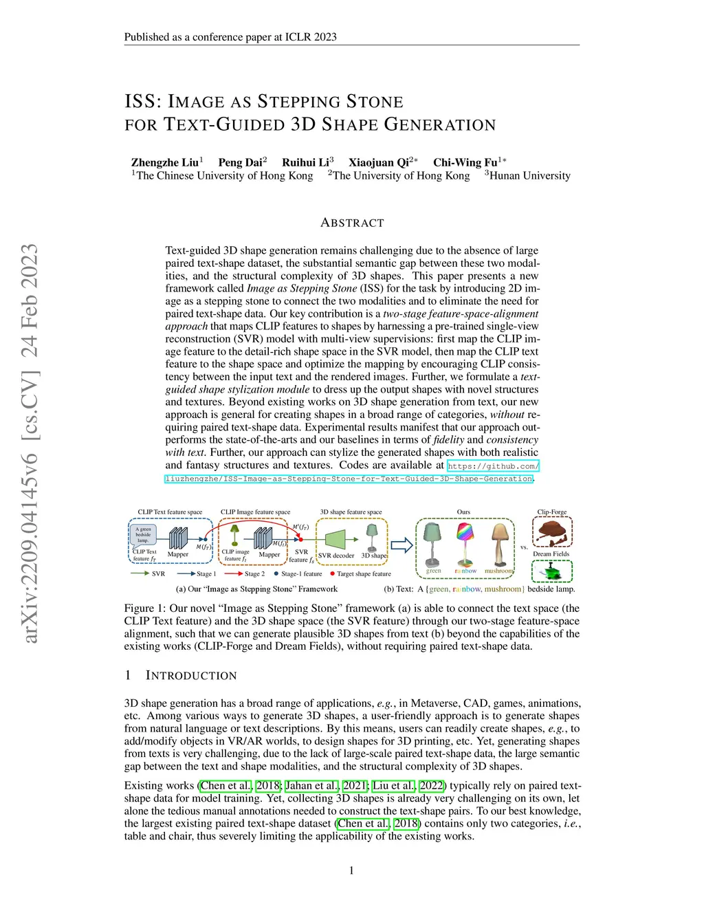 ISS: Image as Stepping Stone for Text-Guided 3D Shape Generation