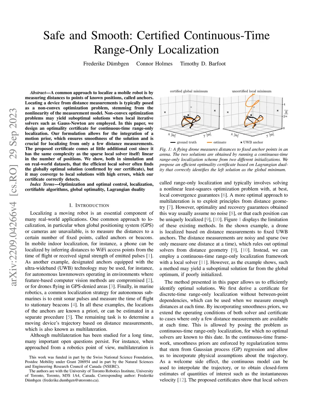 Safe and Smooth: Certified Continuous-Time Range-Only Localization
