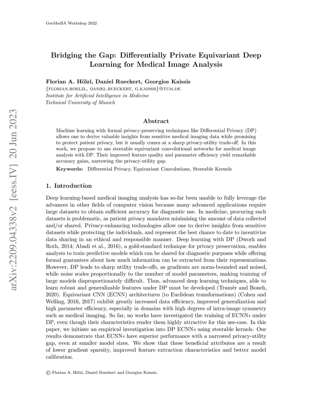 Machine learning with formal privacy-preserving techniques like Differential Privacy (DP) allows one to derive valuable insights from sensitive medical imaging data while promising to protect patient privacy, but it usually comes at a sharp privacy-utility trade-off. In this work, we propose to use steerable equivariant convolutional networks for medical image analysis with DP. Their improved feature quality and parameter efficiency yield remarkable accuracy gains, narrowing the privacy-utility gap.