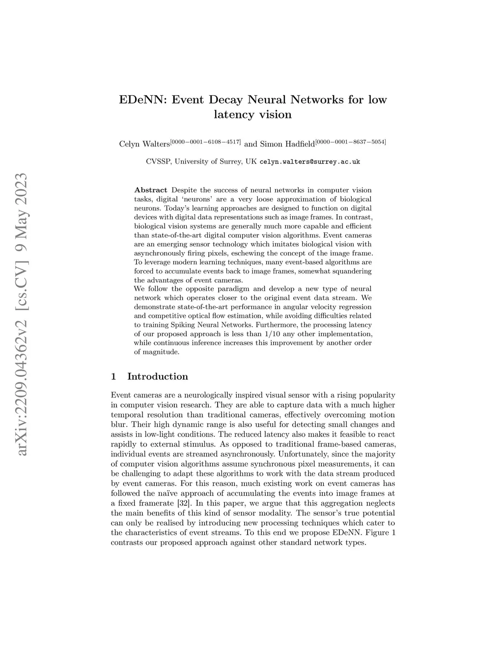 EDeNN: Event Decay Neural Networks for low latency vision