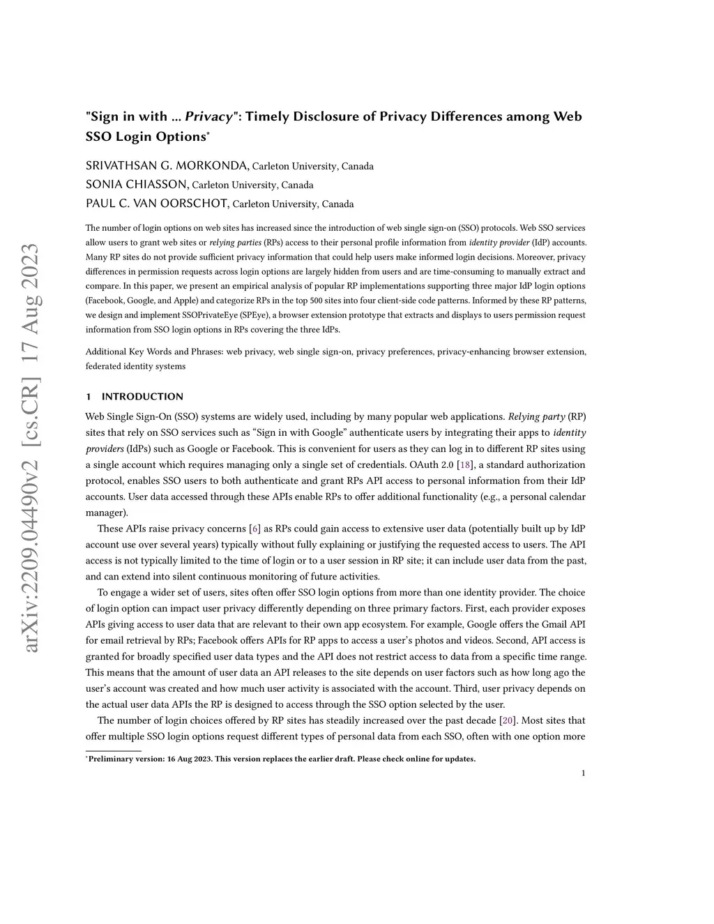 The number of login options on web sites has increased since the introduction of web single sign-on (SSO) protocols. Web SSO services allow users to grant web sites or relying parties (RPs) access to their personal profile information from identity provider (IdP) accounts. Many RP sites do not provide sufficient privacy information that could help users make informed login decisions. Moreover, privacy differences in permission requests across login options are largely hidden from users and are time-consuming to manually extract and compare. In this paper, we present an empirical analysis of popular RP implementations supporting three major IdP login options (Facebook, Google, and Apple) and categorize RPs in the top 500 sites into four client-side code patterns. Informed by these RP patterns, we design and implement SSOPrivateEye (SPEye), a browser extension prototype that extracts and displays to users permission request information from SSO login options in RPs covering the three IdPs.