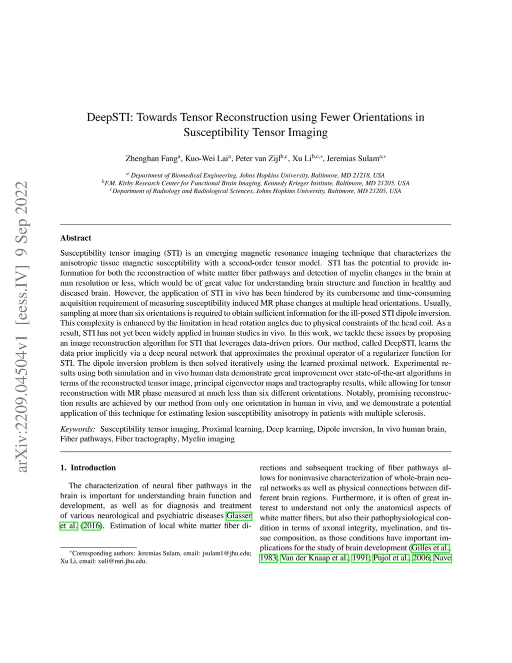 DeepSTI: Towards Tensor Reconstruction using Fewer Orientations in