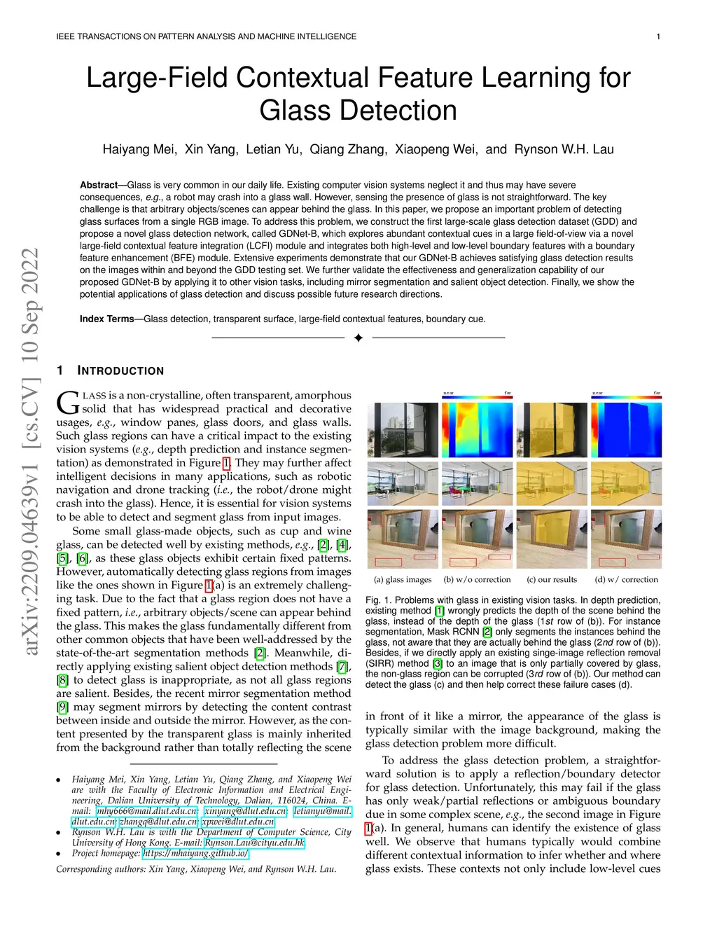 Large-Field Contextual Feature Learning for Glass Detection