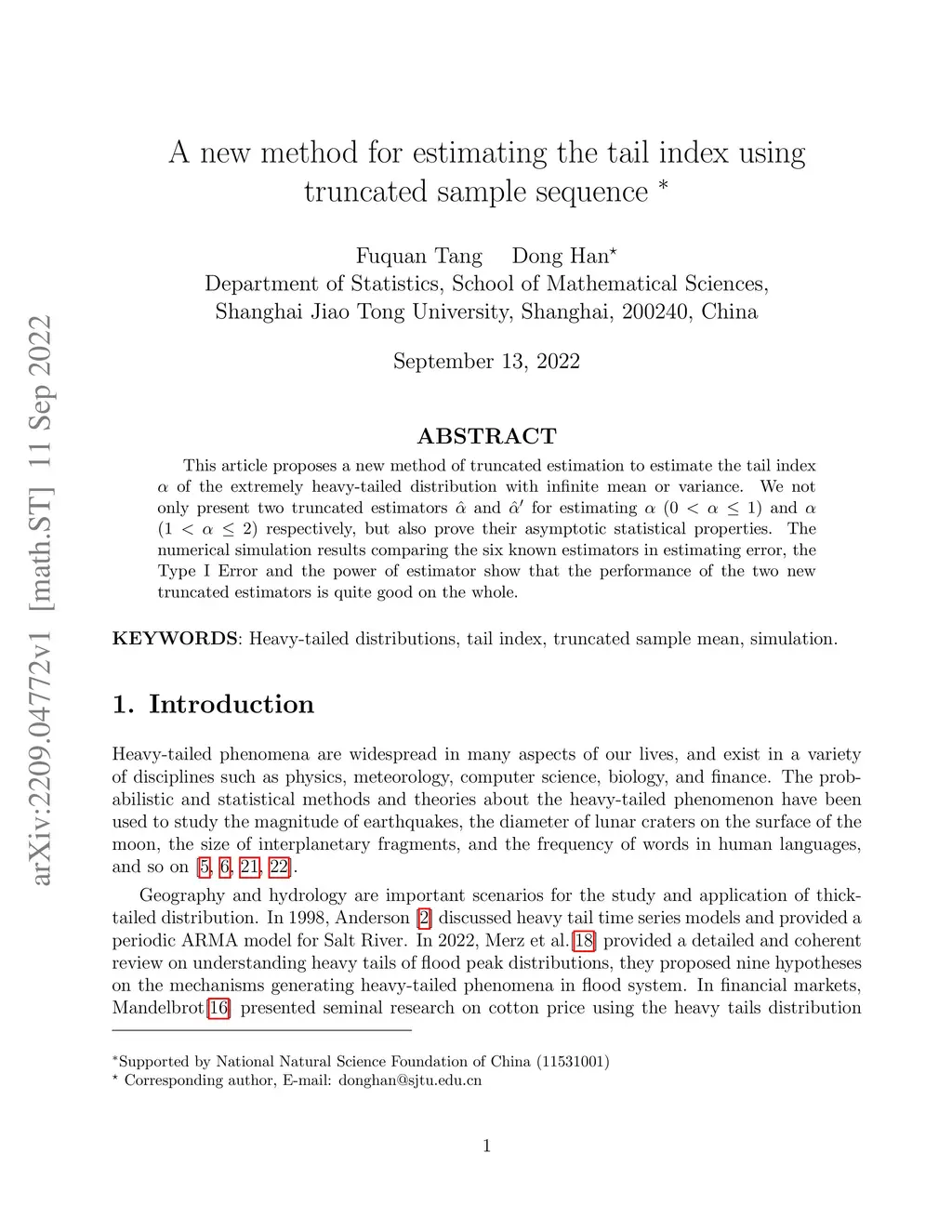 This article proposes a new method of truncated estimation to estimate the tail index of the extremely heavy-tailed distribution with infinite mean or variance. We not only present two truncated estimators and for estimating () and () respectively, but also prove their asymptotic statistical properties. The numerical simulation results comparing the six known estimators in estimating error, the Type I Error and the power of estimator show that the performance of the two new truncated estimators is quite good on the whole.
