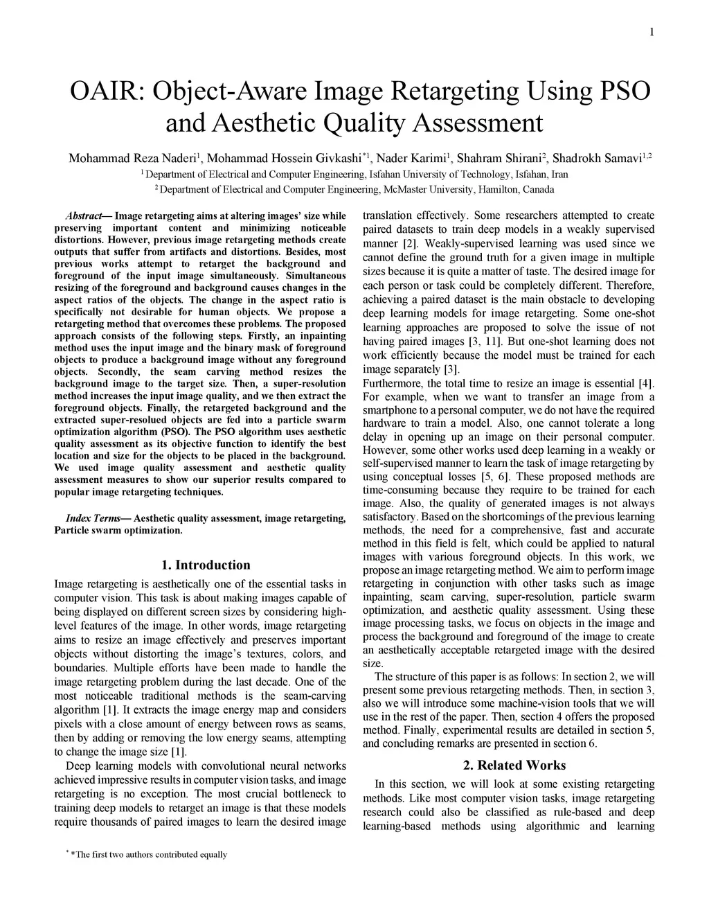 OAIR: Object-Aware Image Retargeting Using PSO and Aesthetic Quality