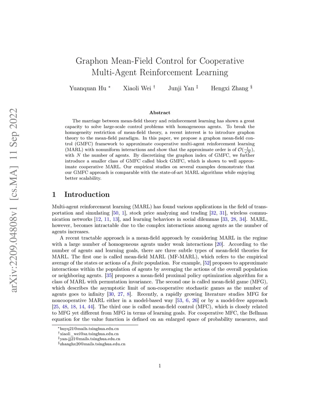 The marriage between mean-field theory and reinforcement learning has shown a great capacity to solve large-scale control problems with homogeneous agents. To break the homogeneity restriction of mean-field theory, a recent interest is to introduce graphon theory to the mean-field paradigm. In this paper, we propose a graphon mean-field control (GMFC) framework to approximate cooperative multi-agent reinforcement learning (MARL) with nonuniform interactions and show that the approximate order is of , with the number of agents. By discretizing the graphon index of GMFC, we further introduce a smaller class of GMFC called block GMFC, which is shown to well approximate cooperative MARL. Our empirical studies on several examples demonstrate that our GMFC approach is comparable with the state-of-art MARL algorithms while enjoying better scalability.