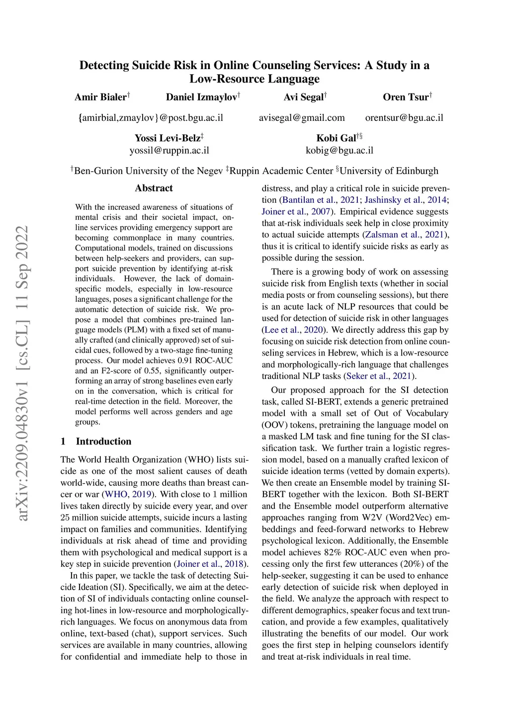Detecting Suicide Risk in Online Counseling Services: A Study in a