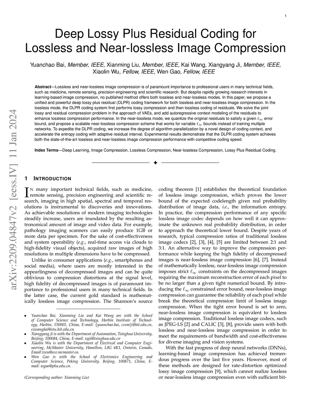 Deep Lossy Plus Residual Coding for Lossless and Near-lossless Image