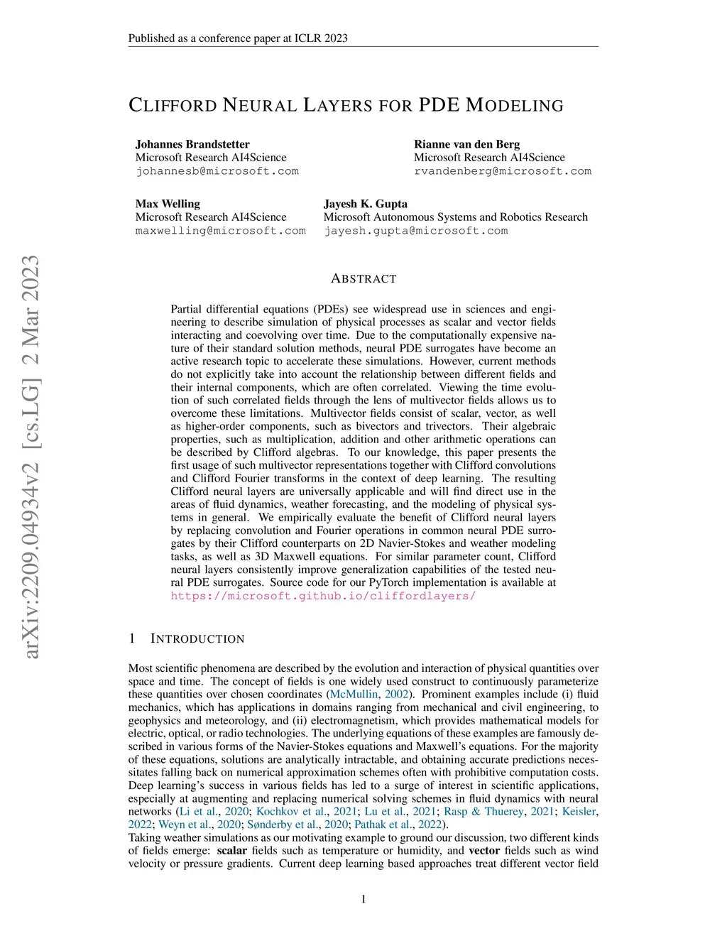 Clifford Neural Layers for PDE Modeling