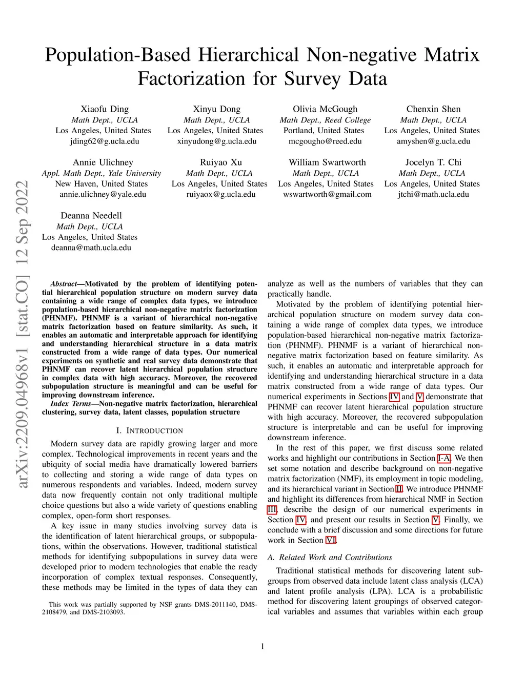 Population-Based Hierarchical Non-negative Matrix Factorization for