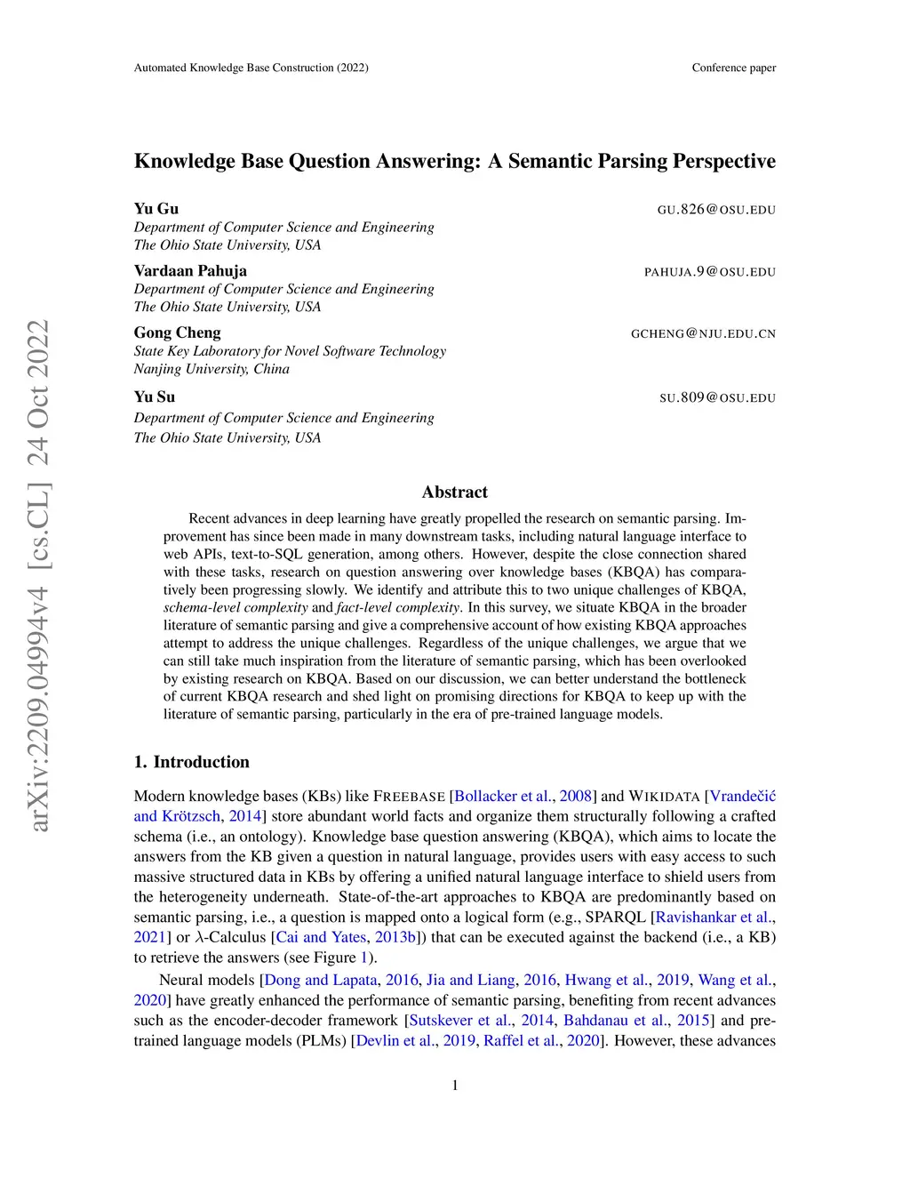 Knowledge Base Question Answering: A Semantic Parsing Perspective