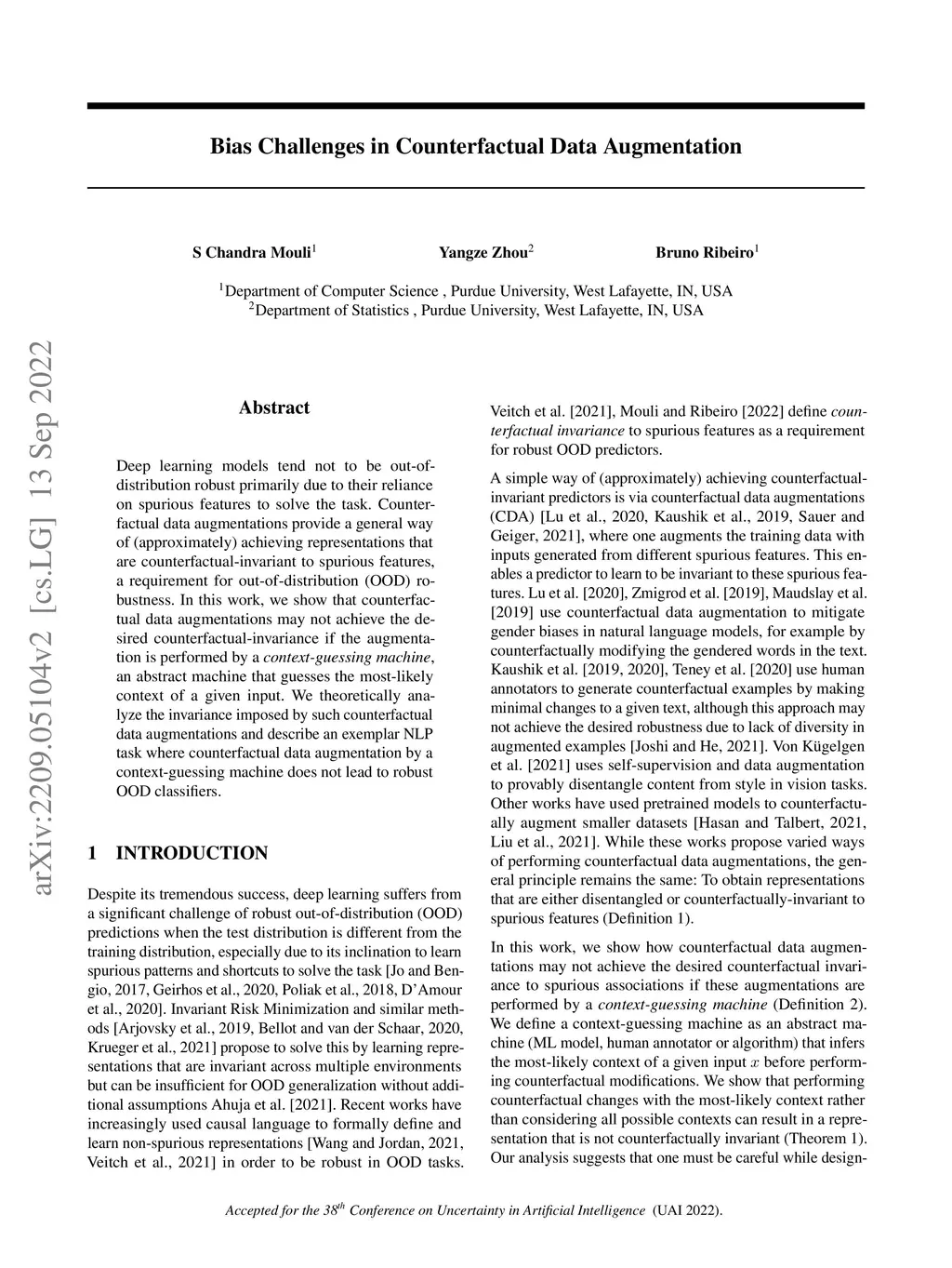 Deep learning models tend not to be out-of-distribution robust primarily due to their reliance on spurious features to solve the task. Counterfactual data augmentations provide a general way of (approximately) achieving representations that are counterfactual-invariant to spurious features, a requirement for out-of-distribution (OOD) robustness. In this work, we show that counterfactual data augmentations may not achieve the desired counterfactual-invariance if the augmentation is performed by a context-guessing machine, an abstract machine that guesses the most-likely context of a given input. We theoretically analyze the invariance imposed by such counterfactual data augmentations and describe an exemplar NLP task where counterfactual data augmentation by a context-guessing machine does not lead to robust OOD classifiers.