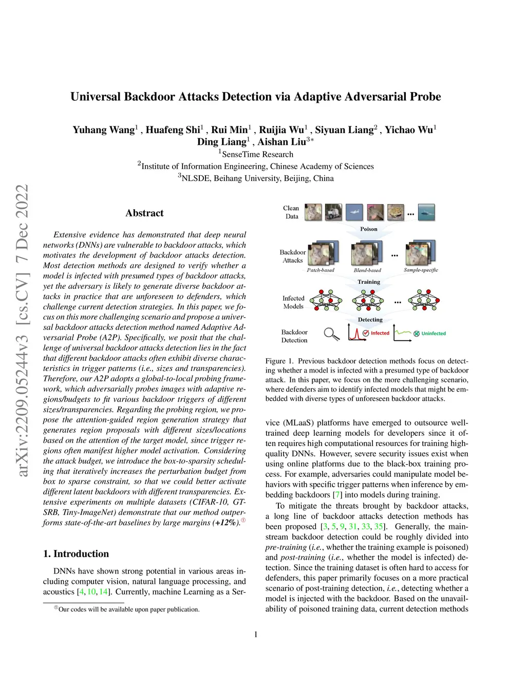 Universal Backdoor Attacks Detection via Adaptive Adversarial Probe