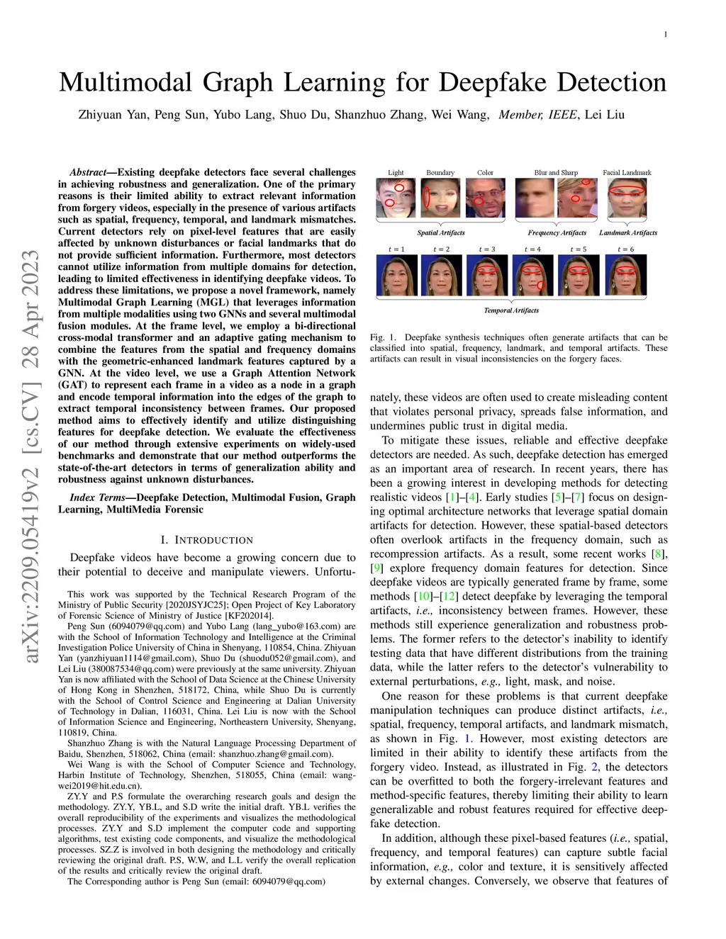Multimodal Graph Learning for Deepfake Detection