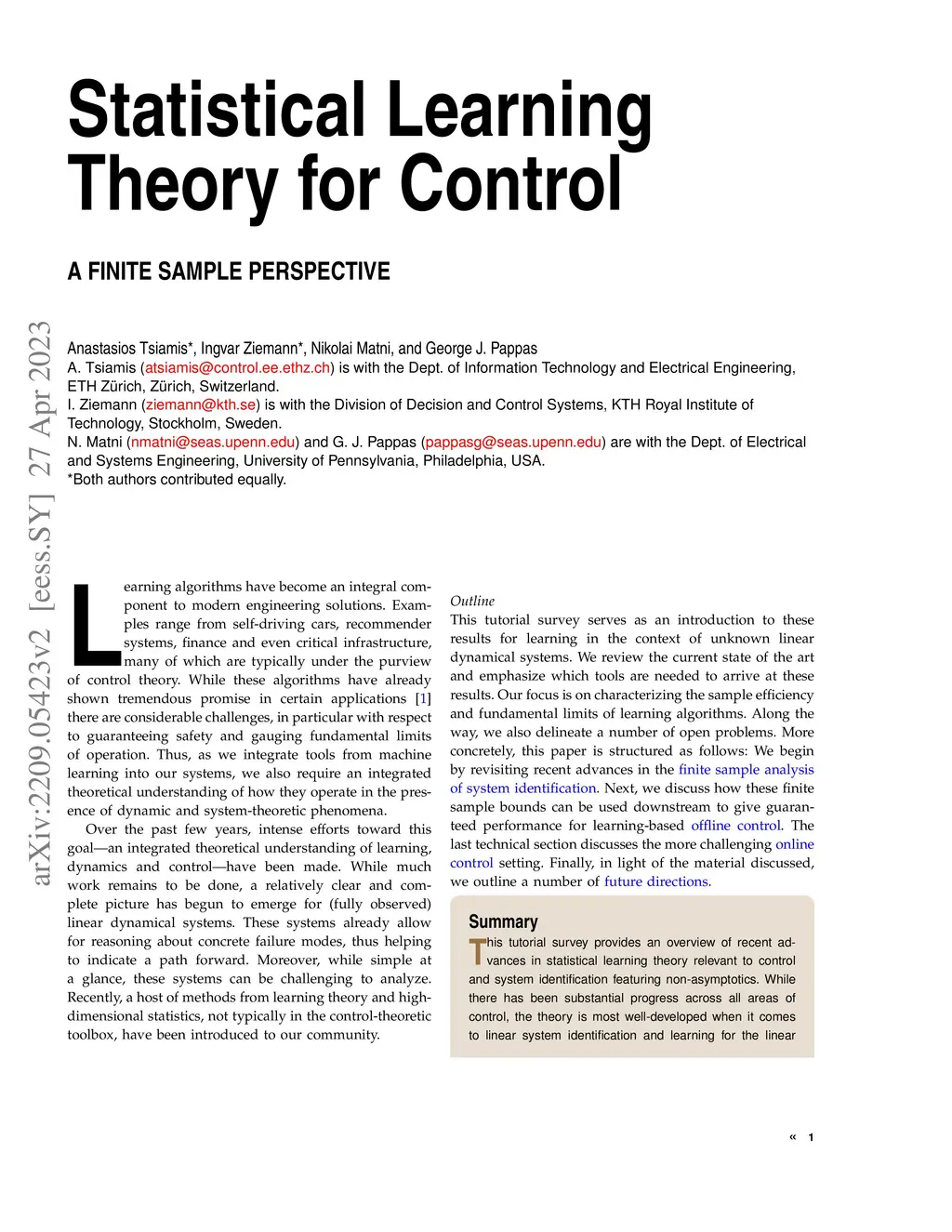 Statistical Learning Theory for Control: A Finite Sample Perspective