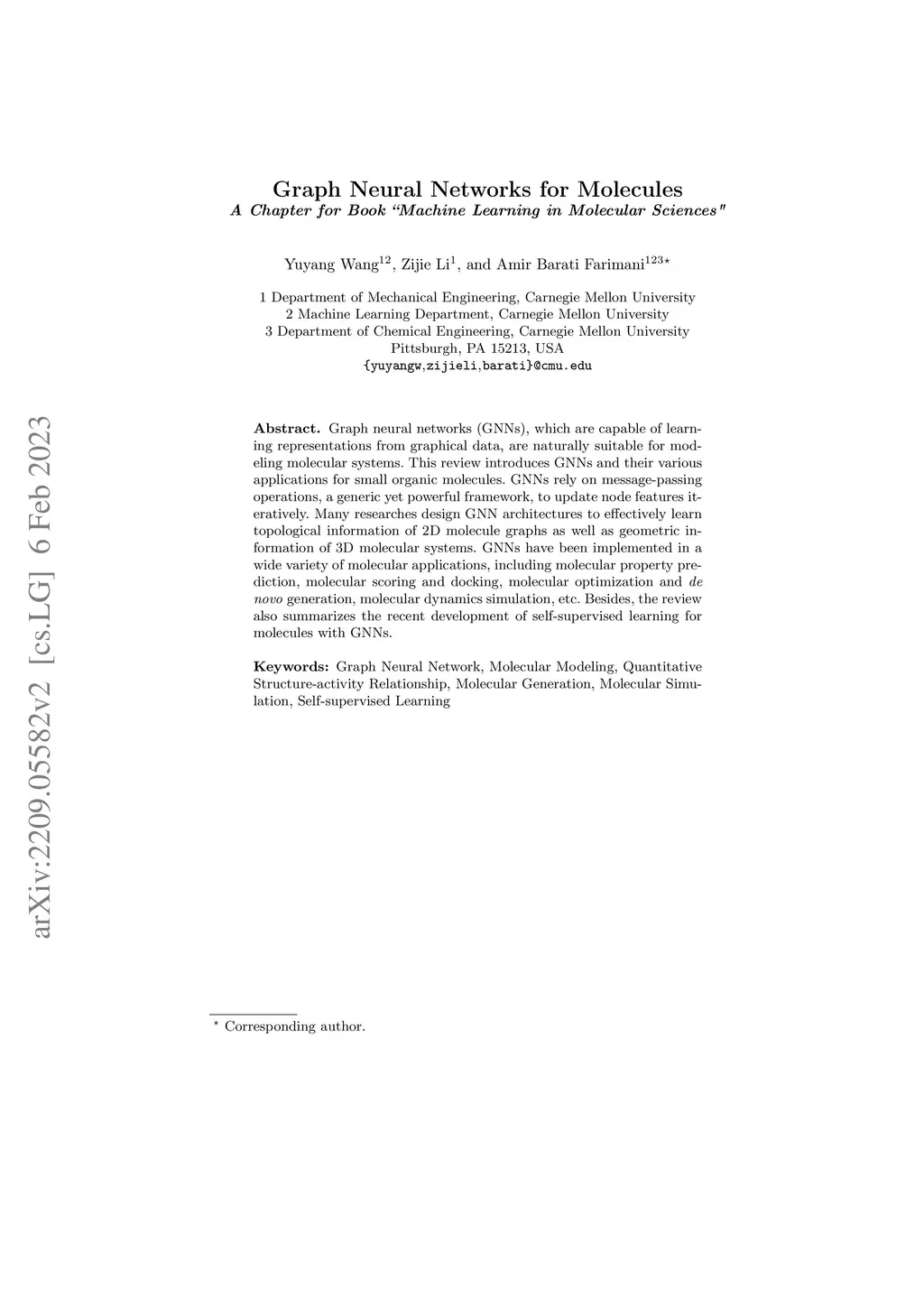 Graph neural networks (GNNs), which are capable of learning representations from graphical data, are naturally suitable for modeling molecular systems. This review introduces GNNs and their various applications for small organic molecules. GNNs rely on message-passing operations, a generic yet powerful framework, to update node features iteratively. Many researches design GNN architectures to effectively learn topological information of 2D molecule graphs as well as geometric information of 3D molecular systems. GNNs have been implemented in a wide variety of molecular applications, including molecular property prediction, molecular scoring and docking, molecular optimization and de novo generation, molecular dynamics simulation, etc. Besides, the review also summarizes the recent development of self-supervised learning for molecules with GNNs.