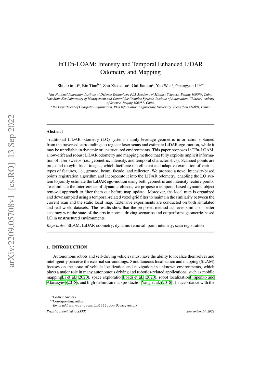 InTEn-LOAM: Intensity and Temporal Enhanced LiDAR Odometry and Mapping