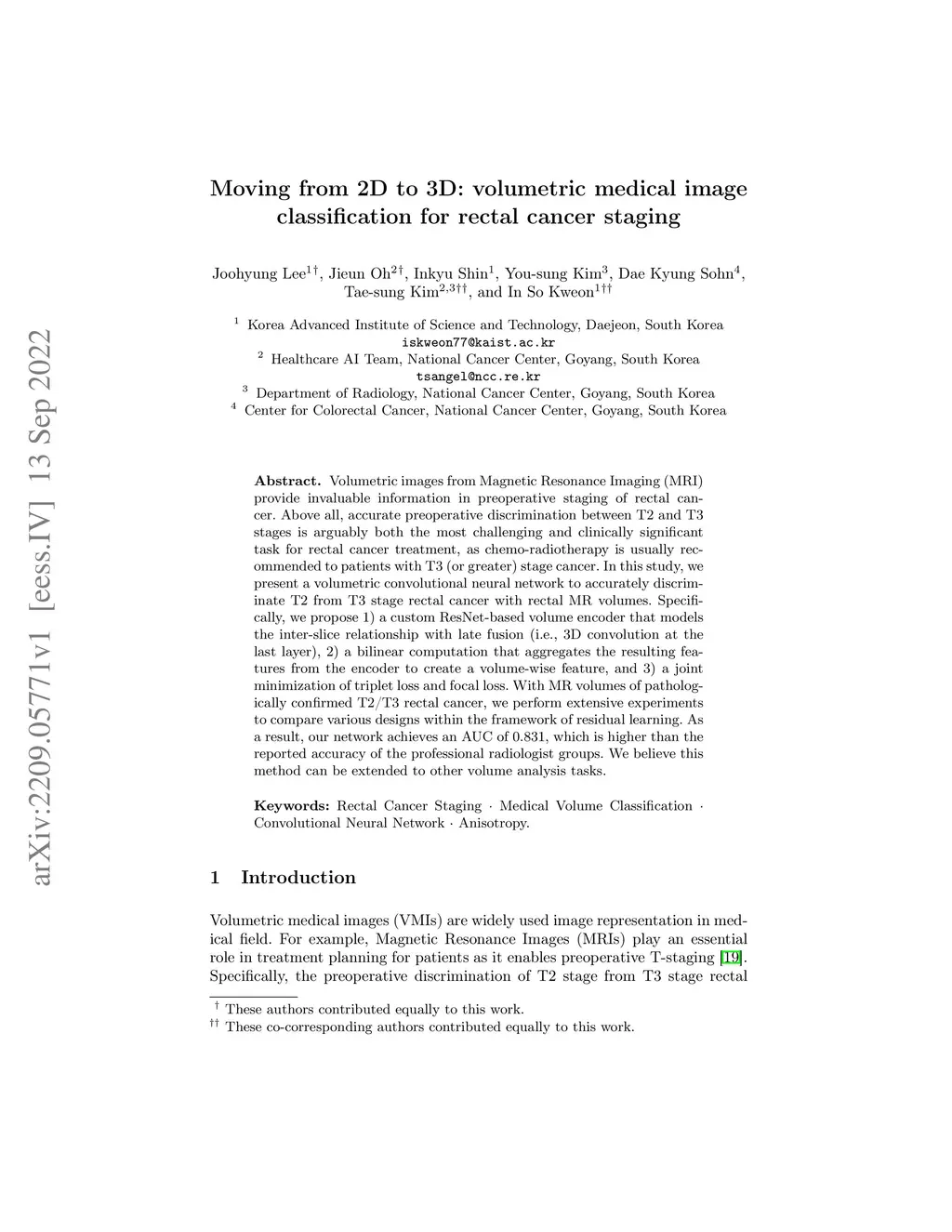 Moving from 2D to 3D: volumetric medical image classification for rectal