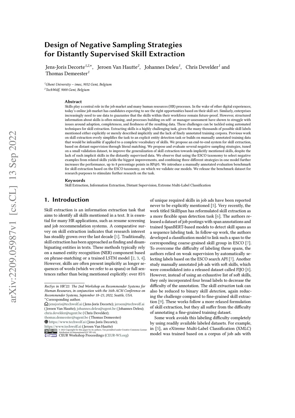 Design of Negative Sampling Strategies for Distantly Supervised Skill