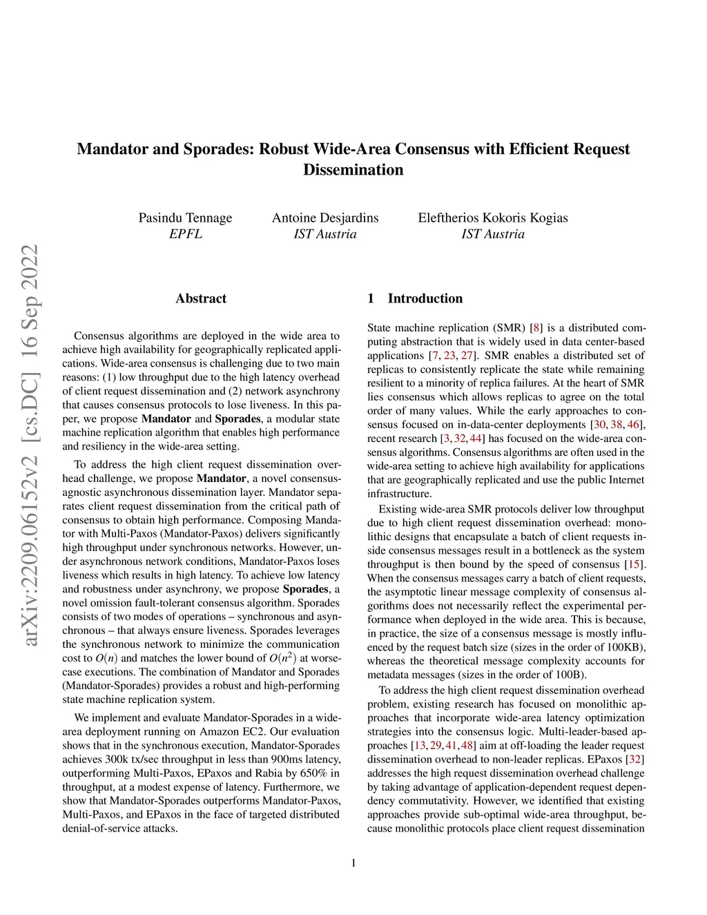 Mandator and Sporades: Robust Wide-Area Consensus with Efficient Request