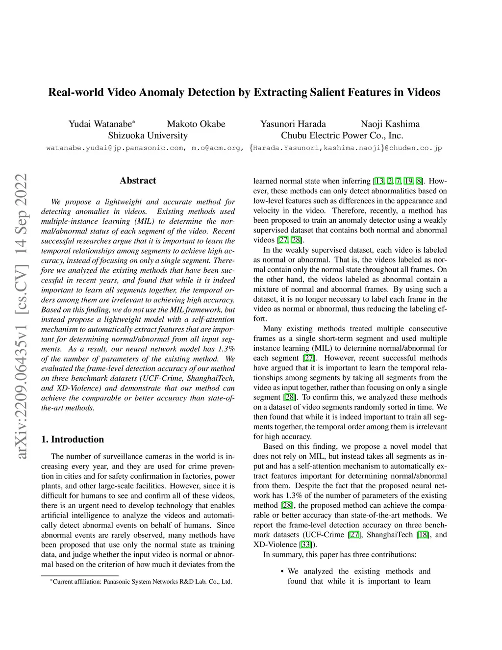 Real-world Video Anomaly Detection by Extracting Salient Features in