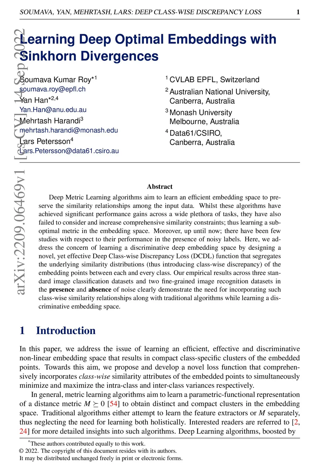 Learning Deep Optimal Embeddings with Sinkhorn Divergences