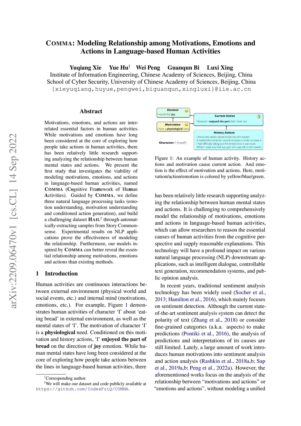 COMMA: Modeling Relationship among Motivations, Emotions and Actions in